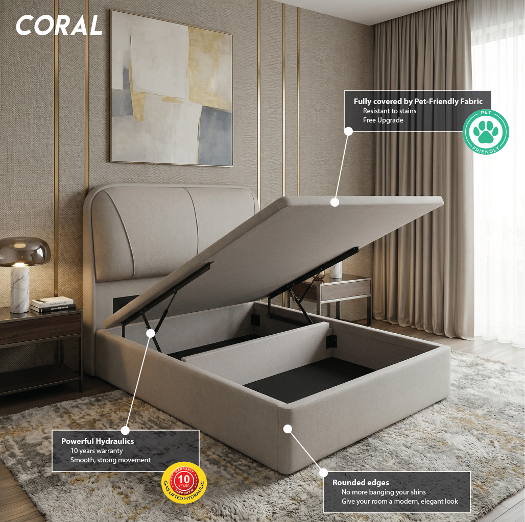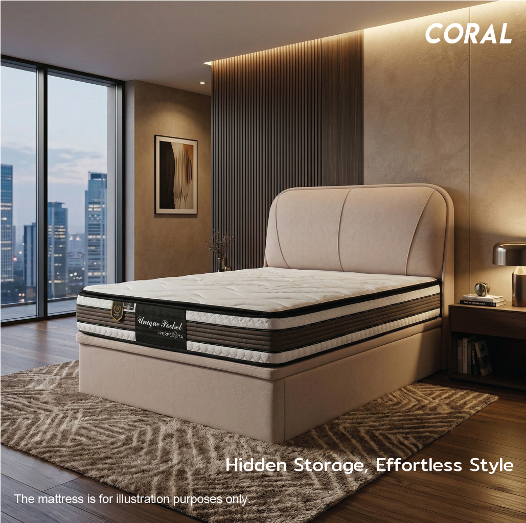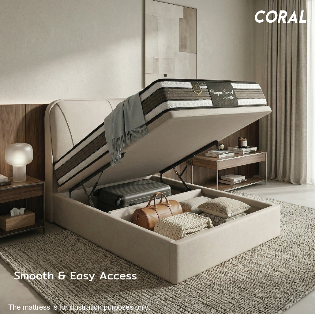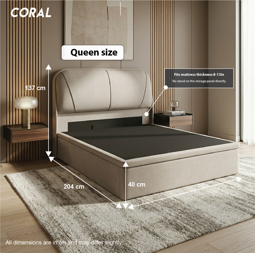 - Spacious Under-Bed Storage: Keep your bedroom clutter-free. The Coral features a massive, easy-to-access storage compartment perfect for stowing away bulky items like luggage, seasonal blankets, quilt covers, and extra bed sheets.