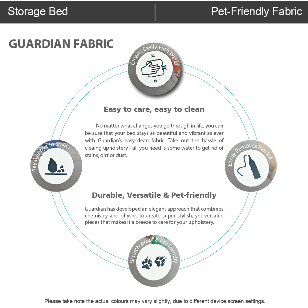 - Pet-Friendly & Scratch-Resistant: Say goodbye to snagged upholstery. Upholstered in premium Guardian™ fabric, this bed is highly scratch-resistant, ensuring it stays beautiful and vibrant even with pets in the house.